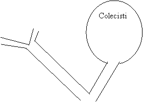 La colecisti o cistifellea è un serbatoio preposto all accumulo della bile prodotta dagli epatociti situato nella fossa cistica del fegato. Il percorso seguito dalla bile è: colangioli, condotti biliari, dotti epatici che in corrispondenza dell ilo danno origine al dotto epatico comune che si continua nel dotto cistico che trasporta la bile nei due sensi perchè qui la bile può soggiornare;alla fine il dotto epatico e il dotto cistico si fondono nel dotto coledoco lungo 5 cm circa che prima di sfociare nel duodeno si unisce al condotto pancreatico maggiore di wirsung nell ampolla di vater