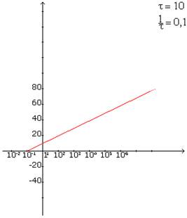 Il valore 10 è una costante, indica la pendenza della retta; il valore  è sempre una costante, ma il suo reciproco indica il punto di partenza di quella retta. È possibile rappresentare la funzione nel seguente modo: