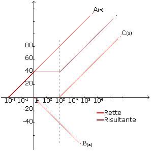 La retta ottenuta ha pendenza +10 dB / Dec, e taglia l'asse x nel punto 0,1.