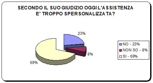 L'attenzione volta dall'organizzazione alle procedure penalizza il rapporto umano in virtù di un garantismo e di una tutela dell'aspetto formale. La spersonalizzazione della relazione genera una riduzione della domanda di relazionalità, un restringimento, nei potenziali utenti dei servizi, della consapevolezza dei bisogni profondi ed un'aspettativa sempre più forte di trovare risposte nell'immediatezza e senza alcun impegno e coinvolgimento personale.