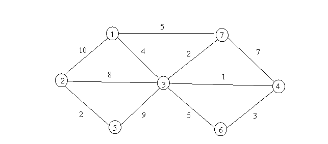 Esercizio 1 - A causa di ripetuti furti, un insieme di negozi, riuniti in una zona pedonale di una cittadina, ha deciso di ricorrere ad una compagnia di vigilanza privata. La zona pedonale è rappresentata in figura, insieme alla lunghezza delle strade lungo le quali si affacciano i vari negozi. La sede della vigilanza è in corrispondenza dell'incrocio 1. La sorveglianza ha due richieste, descritte ai punti b,c. Per ogni richiesta dire quale problema di ottimizzazione vi corrisponde, individuare il metodo di soluzione e trovare la soluzione ottima.