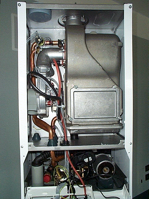 I fumi prima di uscire dallo scambiatore partono dalla parte alta per poi scendere in basso e condensano sul vassoio dove è montato il sifone di scarico e risalgono verso l'alto cedendo ancora calore.