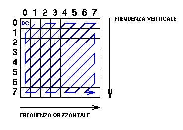 Per ultima viene effettuata una codifica di tipo Huffman (che è di tipo loseless, senza perdita di informazione) che si basa sul principio di trasmettere con codice più corto (pochi bit) i dati frequenti e con codice più lungo i dati meno frequenti: in questo modo, a parità di quantita' di informazione, viene occupata meno banda.